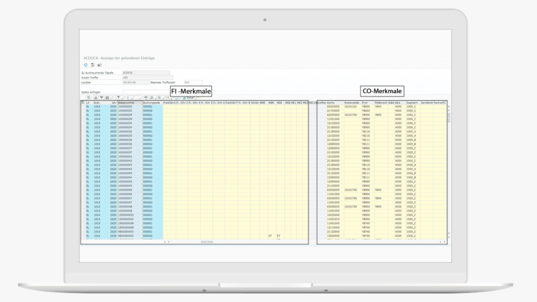 - Alle Controlling-Daten werden auf FI-Einzelpostenebene im Universal Journal mit einer „künstlichen CO-Belegnummer“ gespeichert. Dadurch können multi-dimensionale Analysen und Berichte unter den Modulen FI, als auch CO und CO-PA Merkmalen erfolgen