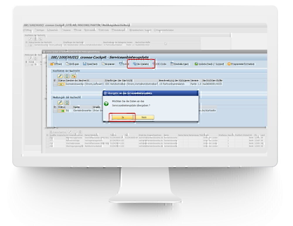 Dank automatisierter Prozesse wie der Importfunktion für Mailadressen aus der ene‘t-Datenbank und der zeitscheibenbasierten Stammdatenverwaltung reduziert das Serviceanbieterupdate den manuellen Aufwand erheblich. Die vollständige Änderungsprotokollierung stellt zudem maximale Revisionssicherheit sicher und bietet eine transparente Dokumentation aller Anpassungen. Unter S/4HANA Utilities ermöglicht die Lösung die Reduzierung des Anlegeaufwands, da hiermit auch das Anlegen der Marktpartner in der MaCo Cloud im Hintergrund erfolgt.