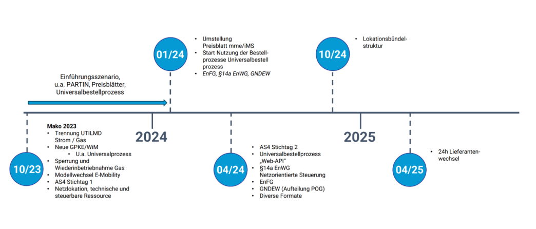 Die Formatanpassung zum 3. April 2024 beinhaltet im Wesentlichen das Thema AS4 mit dem Stichtag 2, an dem alle Prozesse umgesetzt sein müssen. Der Universalbestellprozess erfährt eine Erweiterung durch die Integration der Web-API. Gleichzeitig werden verschiedene Gesetzgebungen (die in Teilen auch schon vor dem Stichtag gültig sind) in die Formate eingebettet, darunter das Gesetz Neustart der Energiewende (GNDEW), das Energiefinanzierungsgesetz (EnFG) und §14a EnWG zur netzorientierten Steuerung.